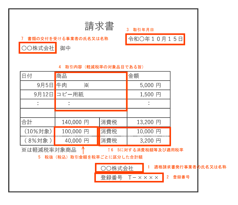 以下の事項が記載された請求書や納品書その他これらに類する書類を交付しなければなりません。