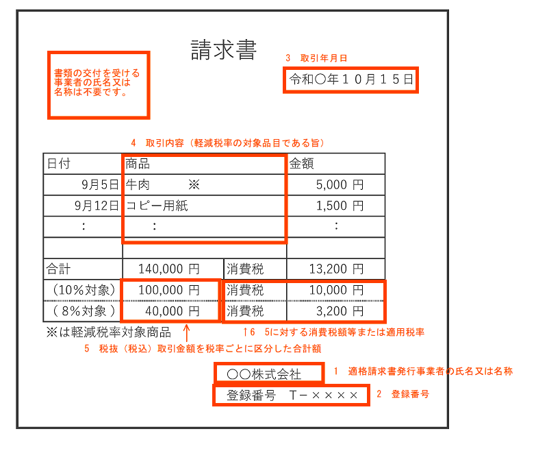 全商品が軽減税率対象商品の場合でも軽減税率の対象品目である旨の記載が義務付けられています。