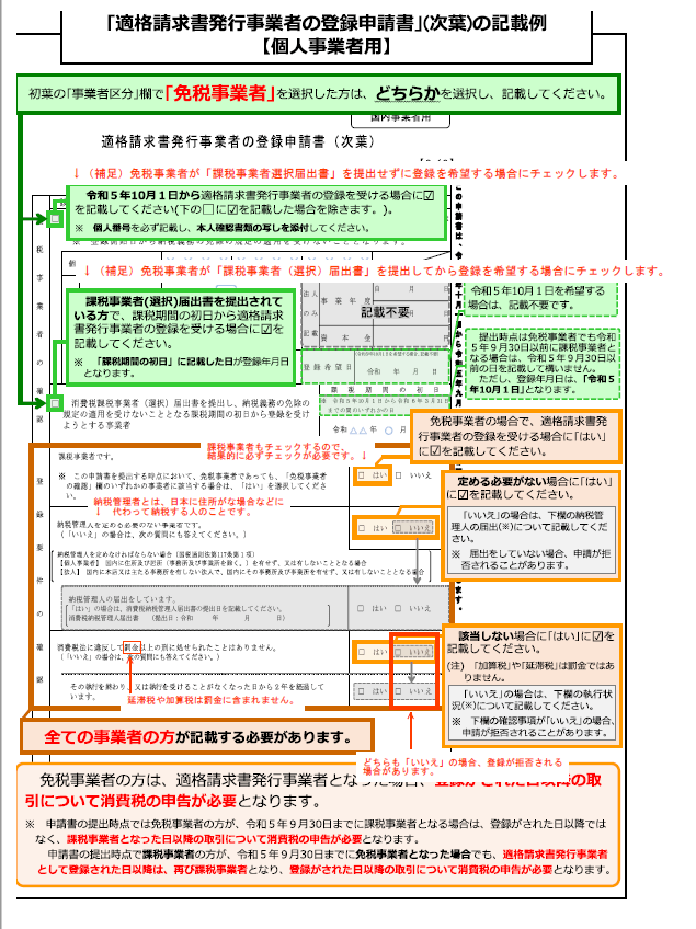ただし令和5年10月1日から令和11年9月30日までは、「消費税課税事業者選択届出書」を提出しなくても、インボイスの登録申請した時点で消費税の課税事業者になり、適格請求書発行事業者になることができます。
